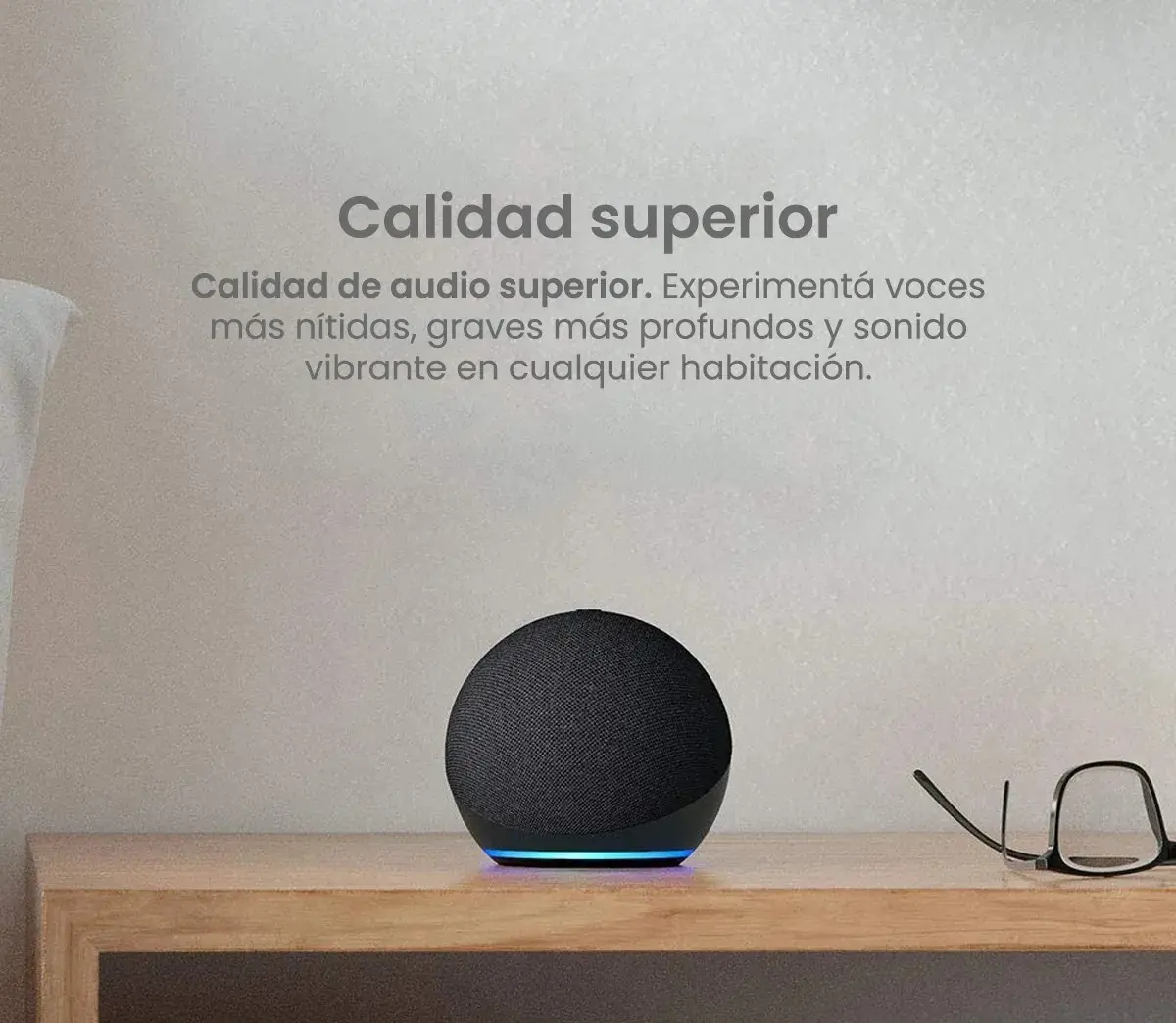Imagina despertar con tu canción favorita, escuchar las noticias mientras te preparas el café, o pedirle a Alexa que te recuerde esa reunión importante. El Echo Dot de 5ª generación no solo responde, te acompaña. Su diseño compacto y elegante se adapta a cualquier rincón, mientras su sonido mejorado llena tu espacio con claridad y profundidad que sorprenden para su tamaño.