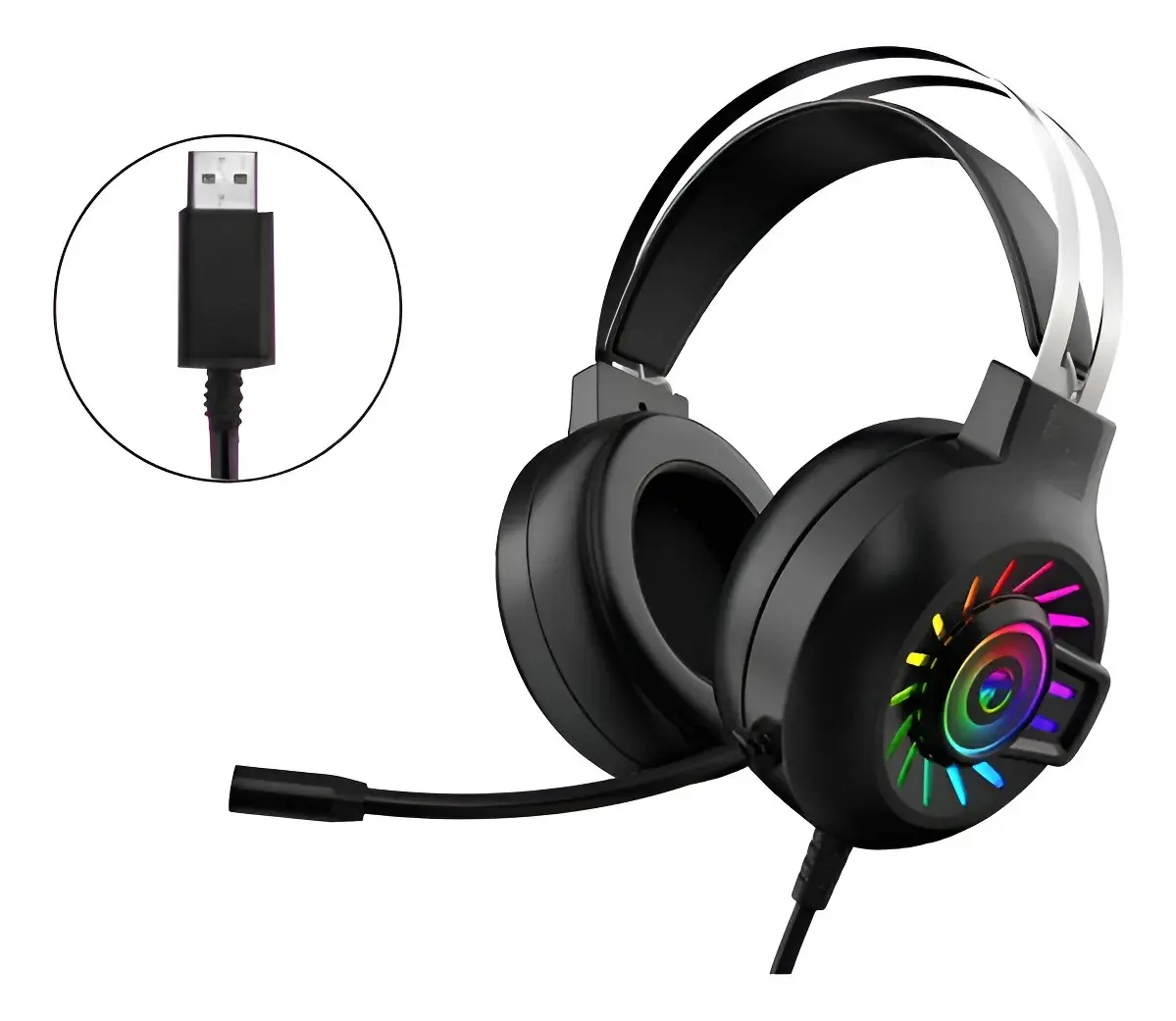 Conector USB Dedicado: El conector USB se utiliza para alimentar las luces LED, garantizando que la iluminación y el audio funcionen de forma independiente y óptima. (Nota: Muchos modelos incluyen un adaptador o cables separados para PC con entradas de audio y micrófono independientes).