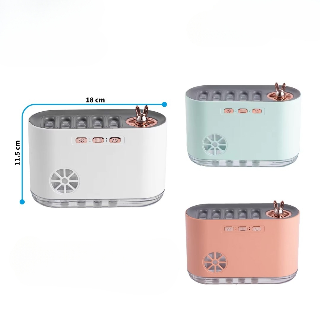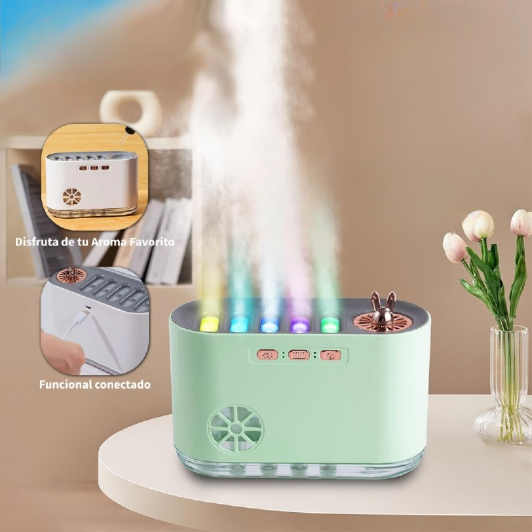 Funcionamiento: Aunque la descripción no especifica el tipo de difusor, lo más común para esta cantidad de cabezales sería un difusor ultrasónico. Estos funcionan vibrando una placa de cerámica a alta frecuencia para romper la mezcla de agua y aceite esencial en una fina niebla que se libera al aire.