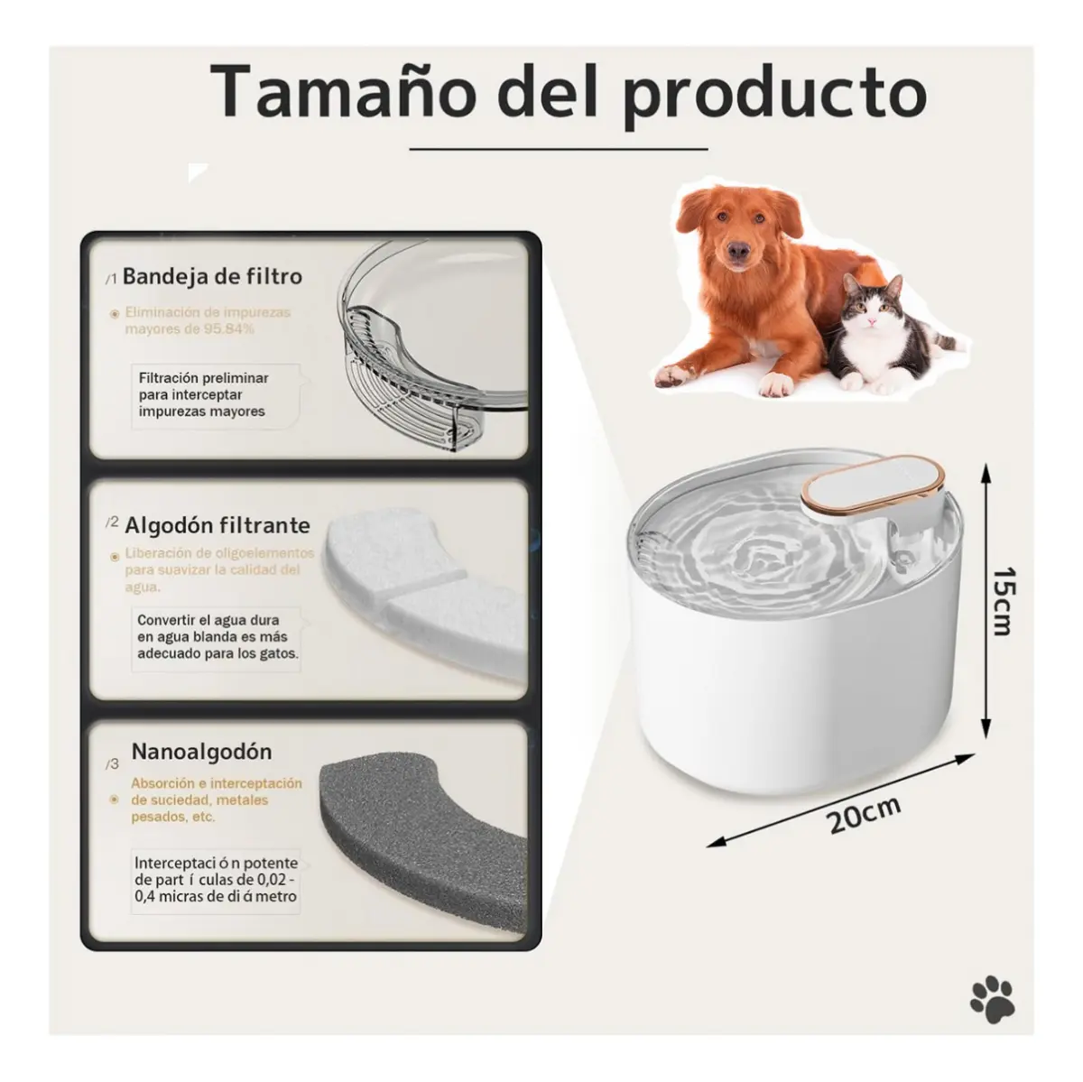 🐾 Filtración avanzada: elimina impurezas, pelos y malos olores para una agua siempre limpia y segura.