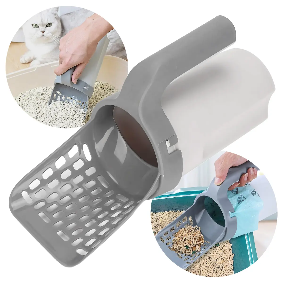 Por eso traemos el Recogedor Inteligente con Depósito Integrado, la forma más limpia, práctica y rápida de mantener la bandeja de tu gato siempre impecable.✨