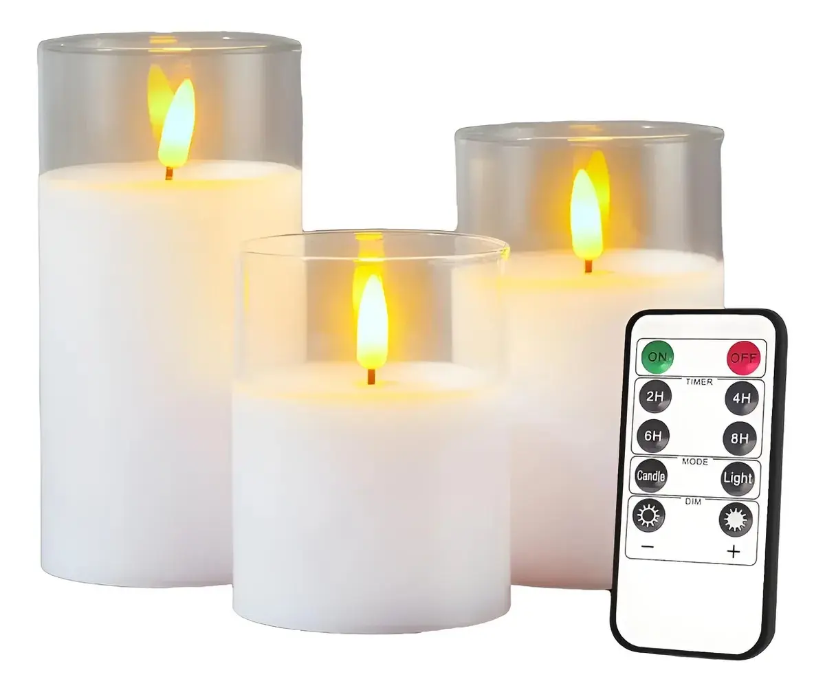 Dale un toque cálido y elegante a cualquier espacio sin preocuparte por el fuego. Estas velas Led simulan una llama realista con efecto parpadeante, y se controlan fácilmente con un control remoto. Incluyen temporizador programable (2h/4h/6h/8h) y diferentes niveles de brillo. Son seguras, decorativas y perfectas para hogares con niños o mascotas. Funcionan con pilas AAA (no incluidas)