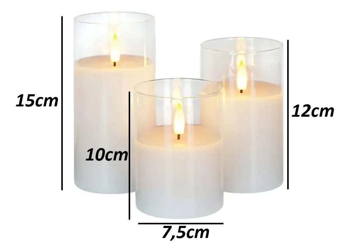 Este elegante Set de 3 Velas Infinitas LED combina la belleza atemporal de la luz de una vela con la comodidad y seguridad de la tecnología moderna. Presentadas en sofisticados cilindros de vidrio transparente, estas velas son el acento decorativo perfecto para cualquier espacio que busque un toque de calidez y distinción. ¡Ambienta cenas, bodas, spas o tu rincón favorito con solo un clic!